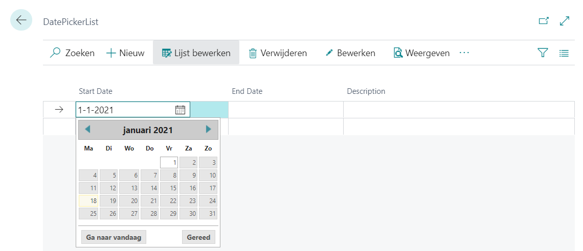 Since version 17.02 we encounter peculiar behavior when selecting dates via the DatePicker. After selecting a date via the date picker, the OnValidate is no longer triggered when manually selecting another field by clicking on it, rather than using the Tab key. It looks like this behavior only happens when data is entered in a page of type list.