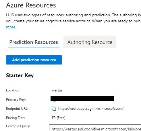 @luhan2017 Thank you very much for this detailed explanation on what's going on behind the scenes. May I know which key do you refer as endpointKey and luisResource? It'd be great if I can get the screenshot or you can refer mine. I just retried with your configuration and it gives me this error; Screenshot 1 Screenshot 2 |