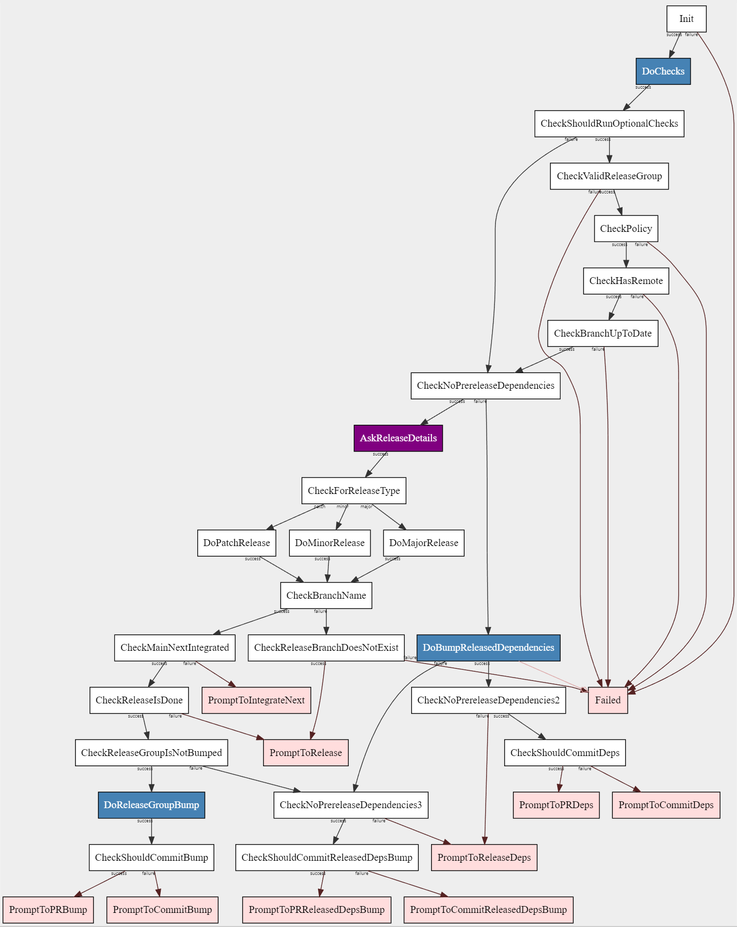 releasecommand, which is used to ensure that a release branch is in good condition, then walks the user through the release.The release process and state machine