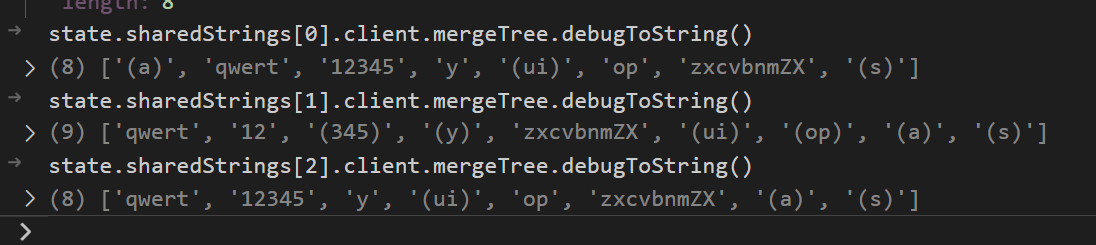 FYI: I think I'm near a working branch with fuzz tests passing (at least for first many seeds... :P). One of the remaining failures is due to merge tree structure and somewhat related to this. We should chat about it once you're back in office, but here are some details. First, the fuzz test JSON: High level, what's going wrong is that client B ends up with a different ordering between its removed segments done in the 2nd to last operation and the segment inserted by client C. Specifically, at the time the (parentheses here indicate the segment is removed; 0,1,2 correspond to clients A,B,C). This is a problem because the interval endpoint added to B is associated with the "op" segment, so when it slides on client B it ends up at the end of the "zxcvbnmZX" segment whereas when it slides on the others it ends up on the start. This difference in structure happens because when B is processing C's addText op, the hierarchical structure of its merge tree with removed segments causes it to insert it at a different place w.r.t removed segments: at that time the segments it has are I should note that this is of course with a fair number of local changes on my branch. One relevant one is that I adjusted Ransom's approach to move intervals to have offset 0 locally pre-ack due to other observed issues, one of which is outlined here. Edit: I think I have a reasonable fix. The Edit2: Fix in #10499 |