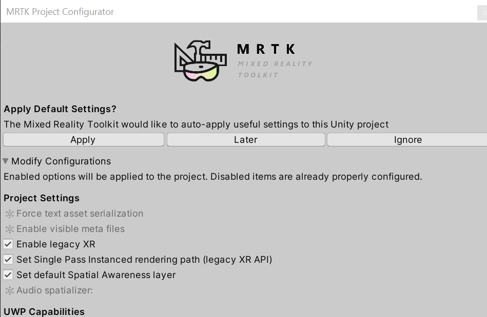 The recent change to allow null for the audio spatializer has resulted in disallowing the setting to be changed in the configuration dialog.  I propose that we never disallow changing the spatializer, even if the setting is acceptable.