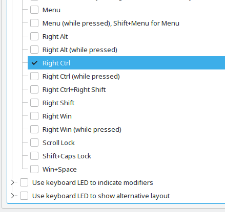 I want to have a way to bind language switch to non-default keys/combinations, i know about win+space, and it's not what i want, using right ctrl is really better for me. As you can see here and here linux already have a wide range of combinations/keys to pick for switch languages, i want something like this in powertoys. |