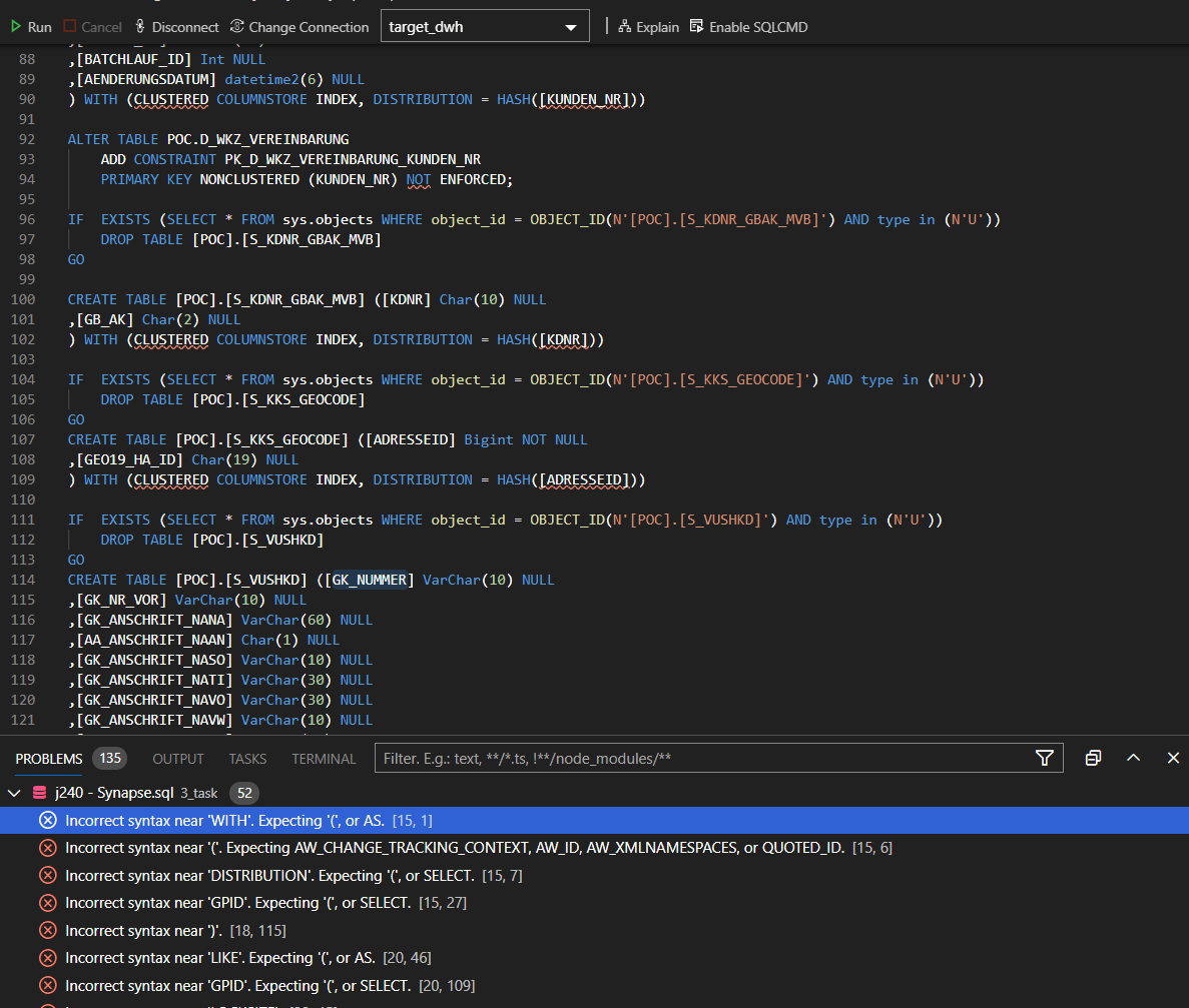 When working on SQL Code for Synapse Analytics, the syntax check is referring to the SQL Server Syntax, not the Syntax of Synapse Analytics SQL Pools. This reports syntax problems even on correct code.