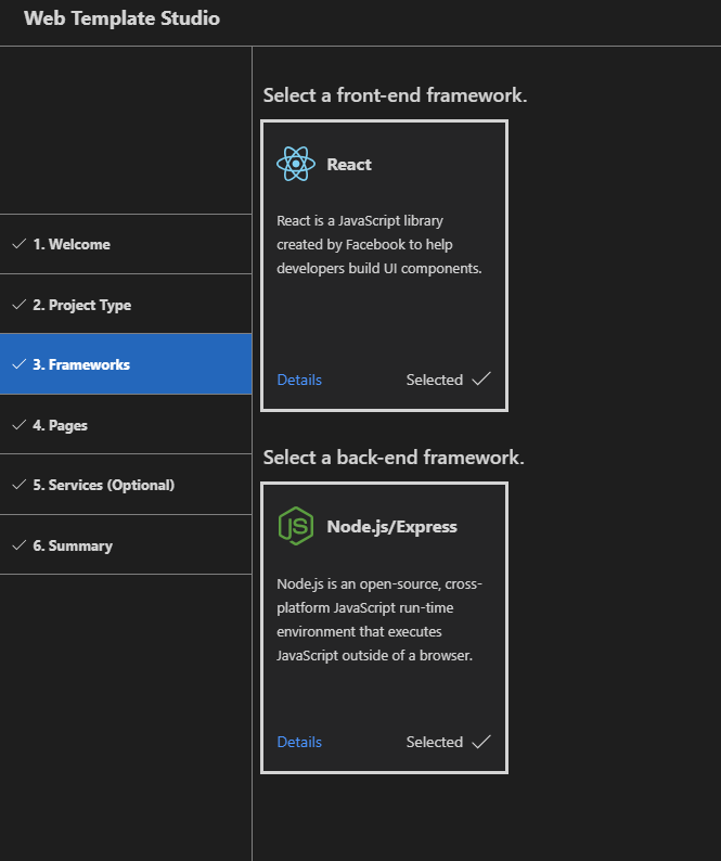 Please note: GitHub issue 662 only mentioned the Frameworks page, but this PR includes changes to other pages as well (i.e. the Project Type page, Pages page, Services page and Summary page).