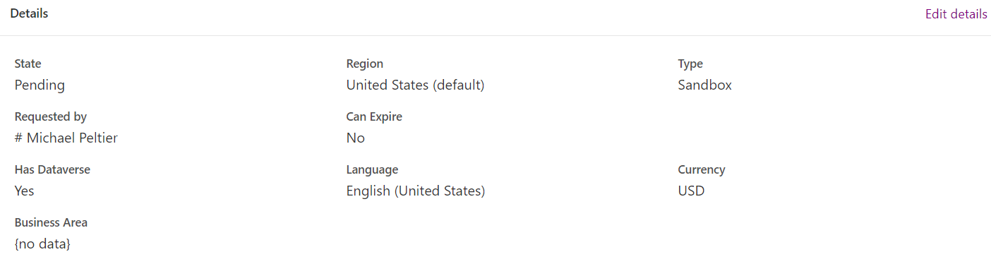 In the Admin Environment Request app, when selecting Edit Details to change the environment name it wipes out some of the request details