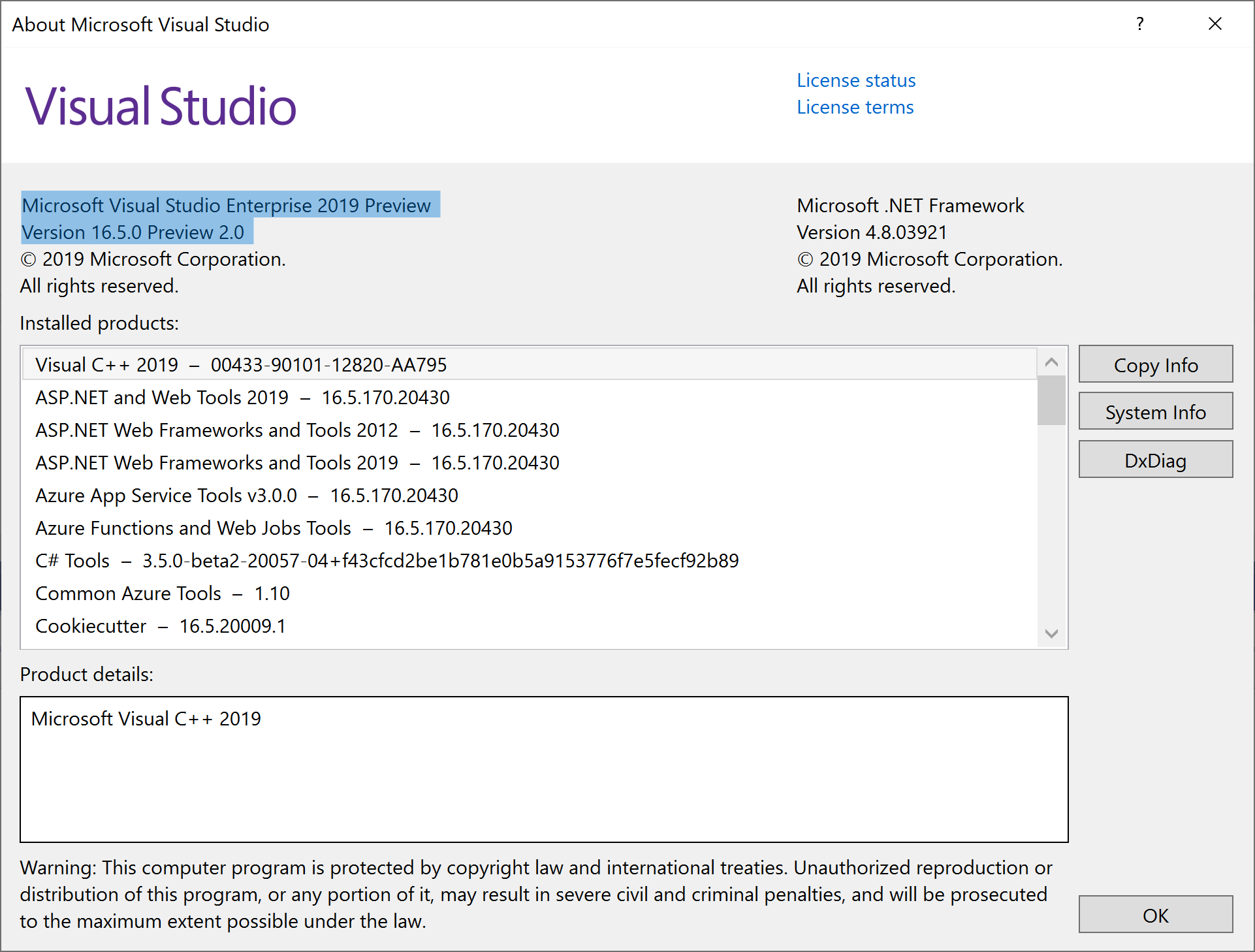 @mediabuff You need to use Visual C++ 16.5 Preview 2 or later.  |