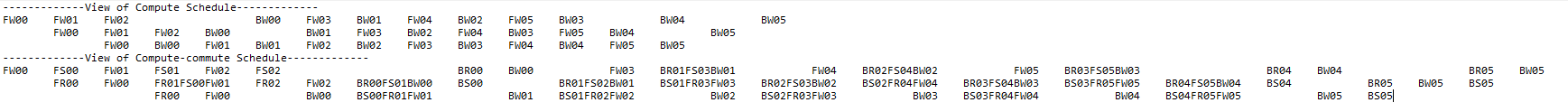 SendandRecv. The following two tables are visualizations for schedules w/woSend/Recv.Symbols in the tables: