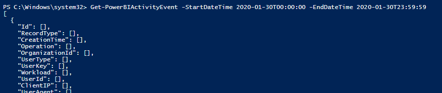 I managed to run successfully this cmdlet however suddenly it retrieves a json where all activities contain empty values. The problem appears both in powershell ISE as in Visual Studio Code.