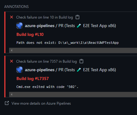 The GitHub view of AZP failures shows the most recent failure. This almost always shows the incorrect root cause error below: