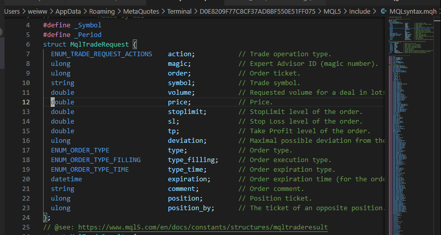 - Get the library: https://c.mql5.com/3/176/MQLsyntax.mqh