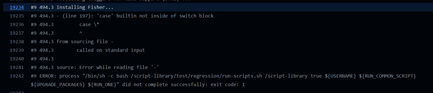 I think the fish installation was successful because I see vscode-dev-containers/script-library/fish-debian.sh Lines 85 to 88 in 172a918