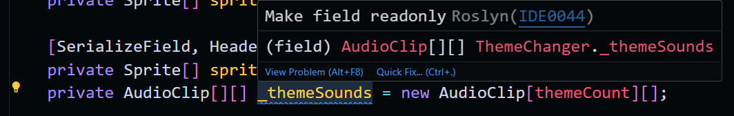Reference of fields are gone, there are only references for methods and classes. Also there are constant readonly modifier advice for private fields that look a little annoying. All extensions are set to the latest version