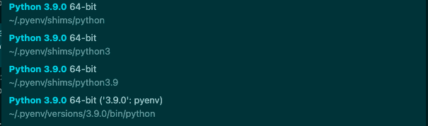 - Python version (& distribution if applicable, e.g. Anaconda): pyenv 3.9.0