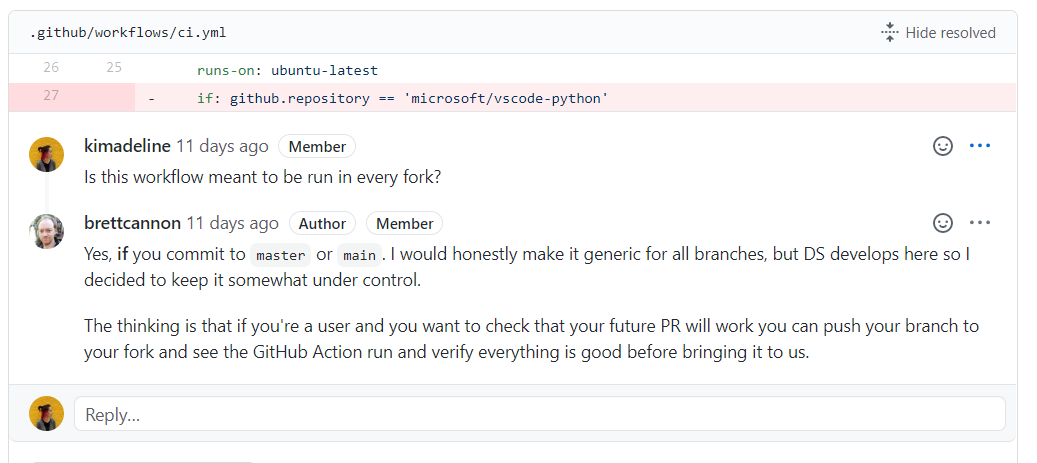 @brettcannon I've seen that topic before 😂 So in the end we don't want the workflow to run on every fork? |