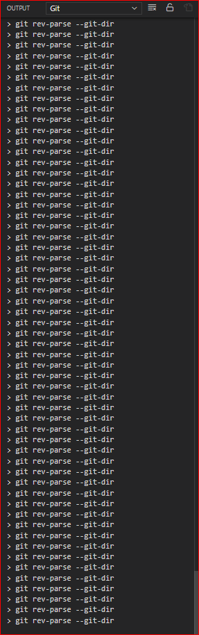 <!-- ⚠️⚠️ Do Not Delete This! bug_report_template ⚠️⚠️ --> <!-- Please read our Rules of Conduct: https://opensource.microsoft.com/codeofconduct/ --> <!-- 🕮 Read our guide about submitting issues: https://github.com/microsoft/vscode/wiki/Submitting-Bugs-and-Suggestions --> <!-- 🔎 Search existing issues to avoid creating duplicates. --> <!-- 🧪 Test using the latest Insiders build to see if your issue has already been fixed: https://code.visualstudio.com/insiders/ --> <!-- 💡 Instead of creating your report here, use 'Report Issue' from the 'Help' menu in VS Code to pre-fill useful information. --> - VS Code Version: 1.54.0 - OS Version: Win10 20Q3 Steps to Reproduce: 1. upgrade to 1.54.0 2. open git tab in vs code 3. NOTE we run inside a VDI with very limited internet access but our github repo is exposed correctly <!-- 🔧 Launch with `code --disable-extensions` to check. --> Does this issue occur when all extensions are disabled?: Yes/No yes issue occurs with extensions disabled <!-- 🪓 If you answered No above, use 'Help: Start Extension Bisect' from Command Palette to try to identify the cause. --> <!-- 📣 Issues caused by an extension need to be reported direct to the extension publisher. The 'Help > Report Issue' dialog can assist with this. --> image -> all names are from just one get repo and repeat  in CMD git status in normal and shows file I just updated and no errors in vs code git log ->  the rev-parse is in an endless loop