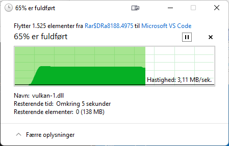 When I extract files to my disk, it always hangs at vulkan-1.dll for 5 minutes, even VS Code is not running. It also happens on Windows 10.