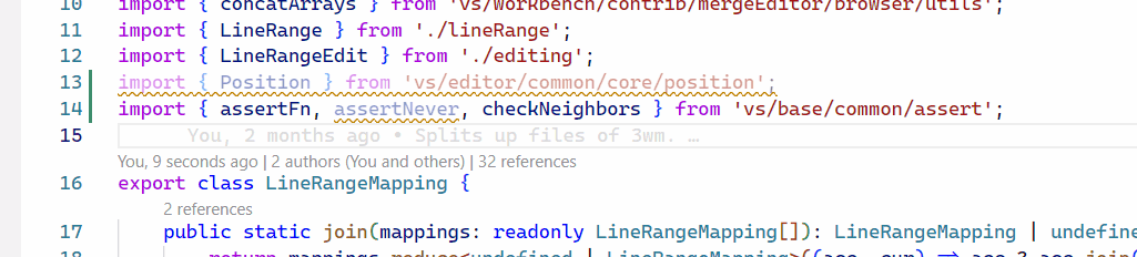 I wonder why all of line 14 becomes gray (i.e. unused) after I remove line 13.