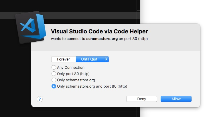 I noticed that the javascript and typescript extensions both make requests to schemastore.org port 80. I realize this isn't the most sensitive piece of data, but as a security-aware user, I would prefer external HTTP requests to actually be HTTPS :)