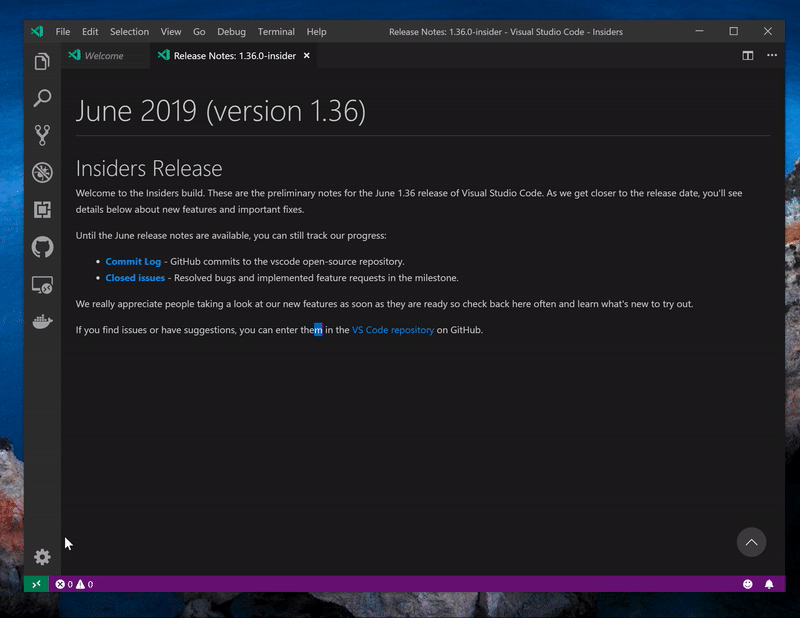 VS Code version: Code - Insiders 1.36.0-insider (c089daa, 2019-06-07T05:19:15.188Z)