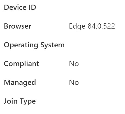 When using a Conditional Access policy to block all other devices (except for Android, iOS, Windows Phone, Windows and macOS), the policy blocks the connection with the below message because the authentication sign-in log has no device visible.