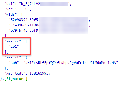 cp1client capability to our public client builder. This capability sends anxms_ccparam toEvoSTSwhich tells it that the client is capable of handling CAE scenarios and should be issued with CAE tokens.Claims in JWT: