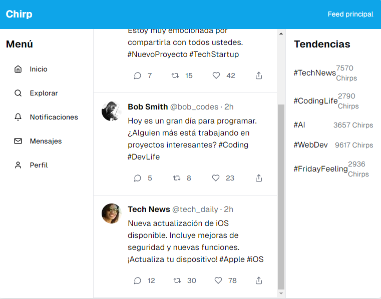Publicaciones en Tiempo Real: Permite a los usuarios publicar, comentar y reaccionar a las publicaciones instantáneamente.