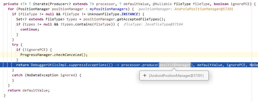 (The first element of myPositionManagers shown in this screenshot is AndroidPositionManager, the second is MixinPositionManager.)
