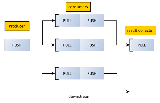 An example orchestrator is provided with the package. You can use this type of socket to assign work to other Worker processes like this: