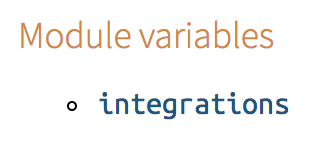 __all__would be reported as a module. Now it's reported as variable as well as a module but the links are broken.integrationshere is a module in fact (mentioned in__all__):In the selector below the module in