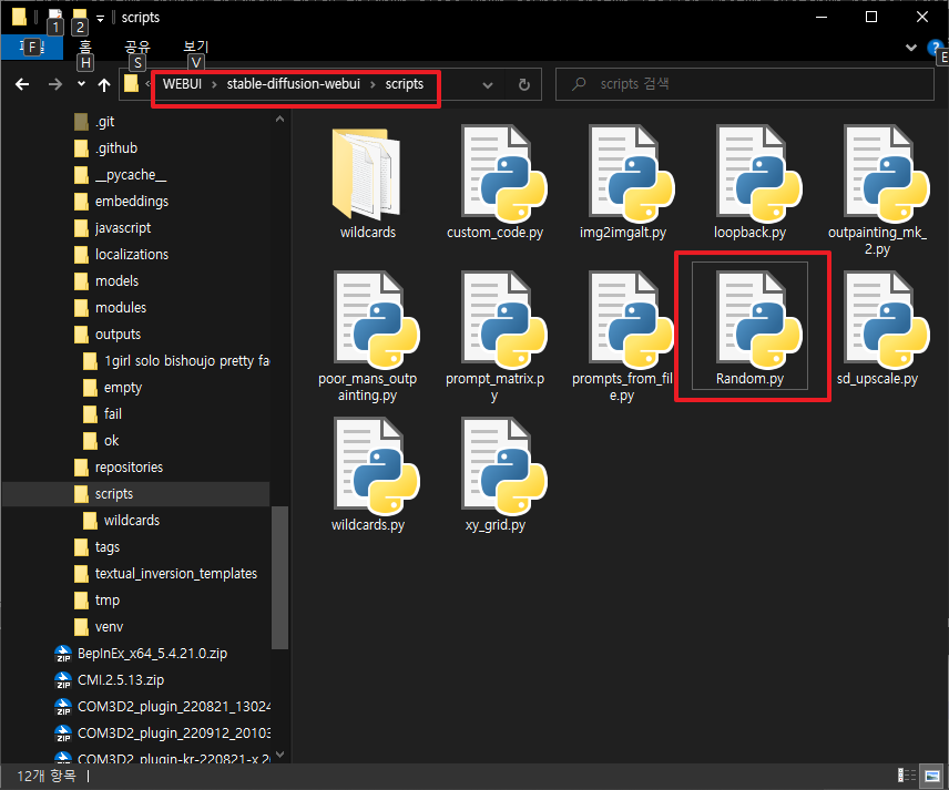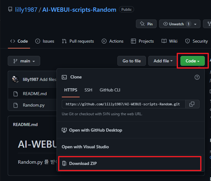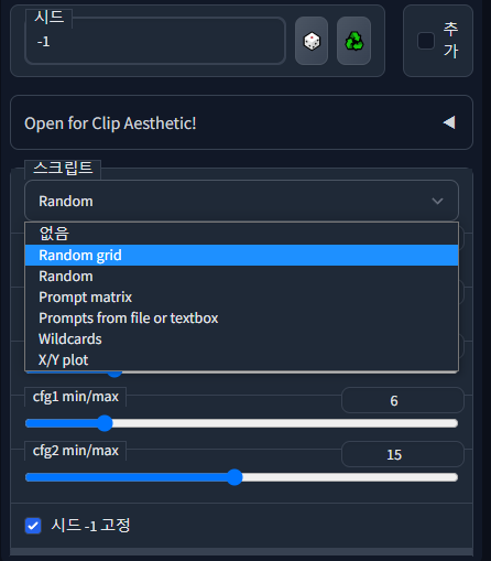Random.py 를 받아서 WEBUI\stable-diffusion-webui\scripts 에 넣으면 된다