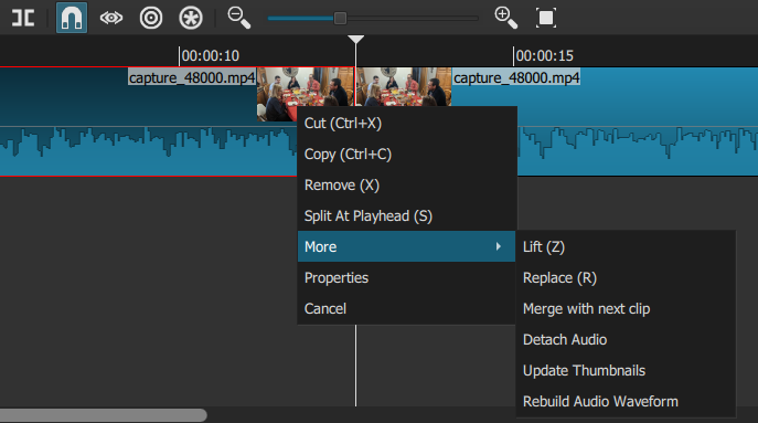 It is good to use MLT APIs where you can, but sometimes they are macro-like and make undo difficult to implement. It all depends. I will review your change soon. As far as keyboard shortcut, we can wait. If you want to be proactive about that, some times I see what some other tools such Premiere or Avid use for that, if available, and see if there is no conflict and makes sense in the context of our other shortcuts. |