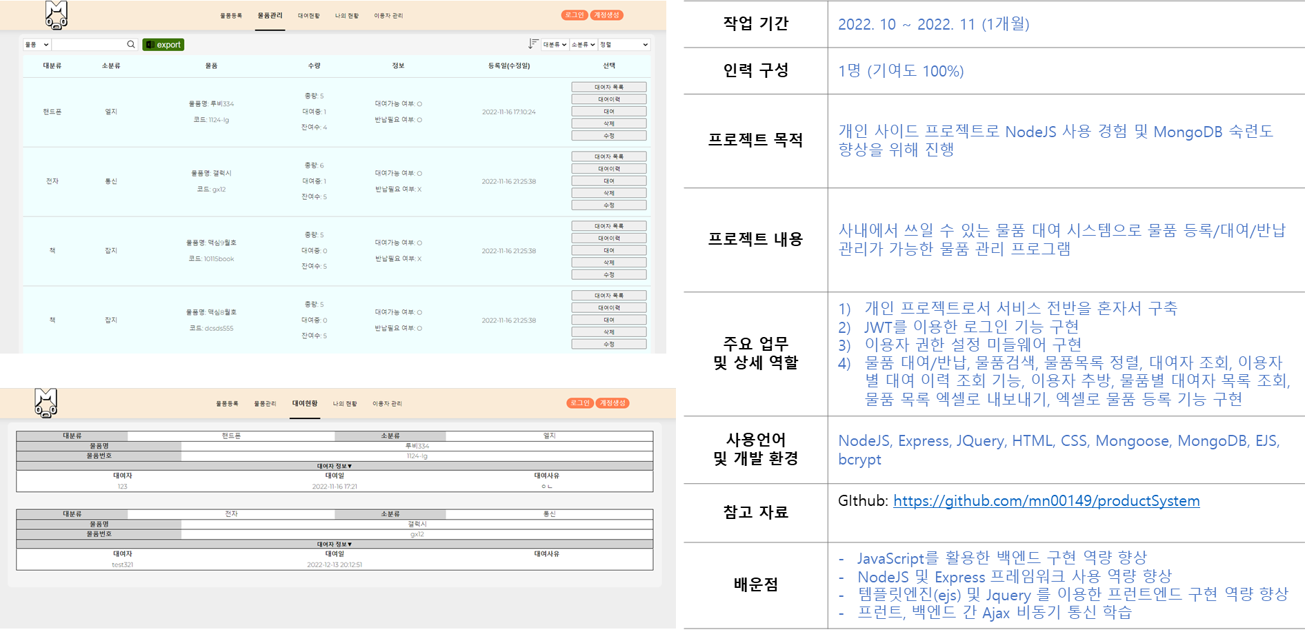 productSystem NodeJs 및 MongoDB 활용 능력을 키우기 위한 개인 프로제트입니다 기술스택 MongoDB, Mongoose, NodeJs, JavaScript, Jquery, ejs, Express