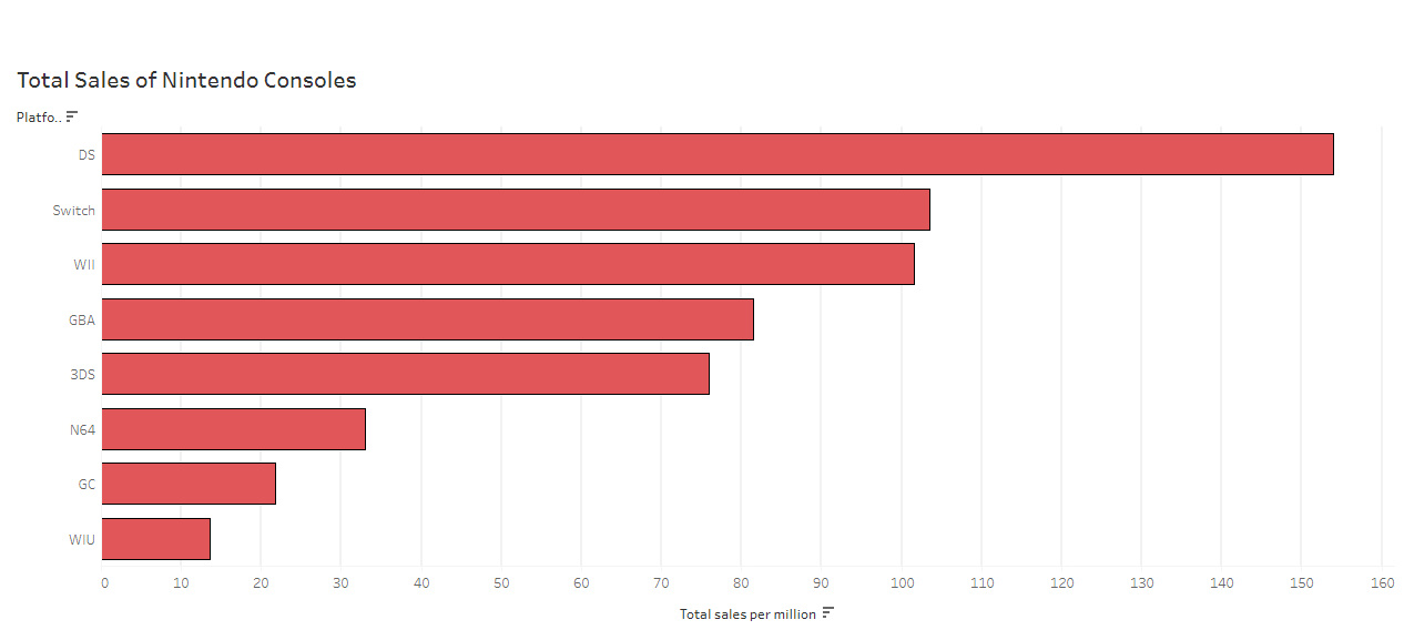 - You can find my Tableau dashboard here https://public.tableau.com/app/profile/minh.doan1078/viz/NintendoProject_16454231265120/Dashboard1