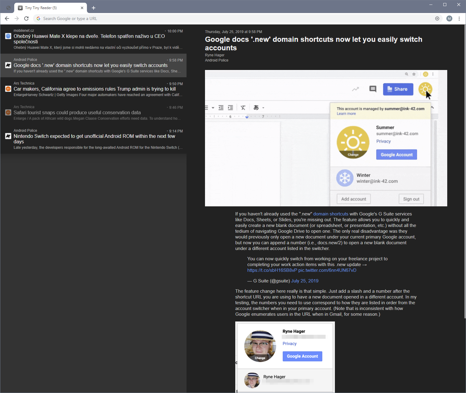 X) to mark it read and remove from list. - Works offline (no automatic image caching or support for managing read states; automatic background sync in service worker - investigate)