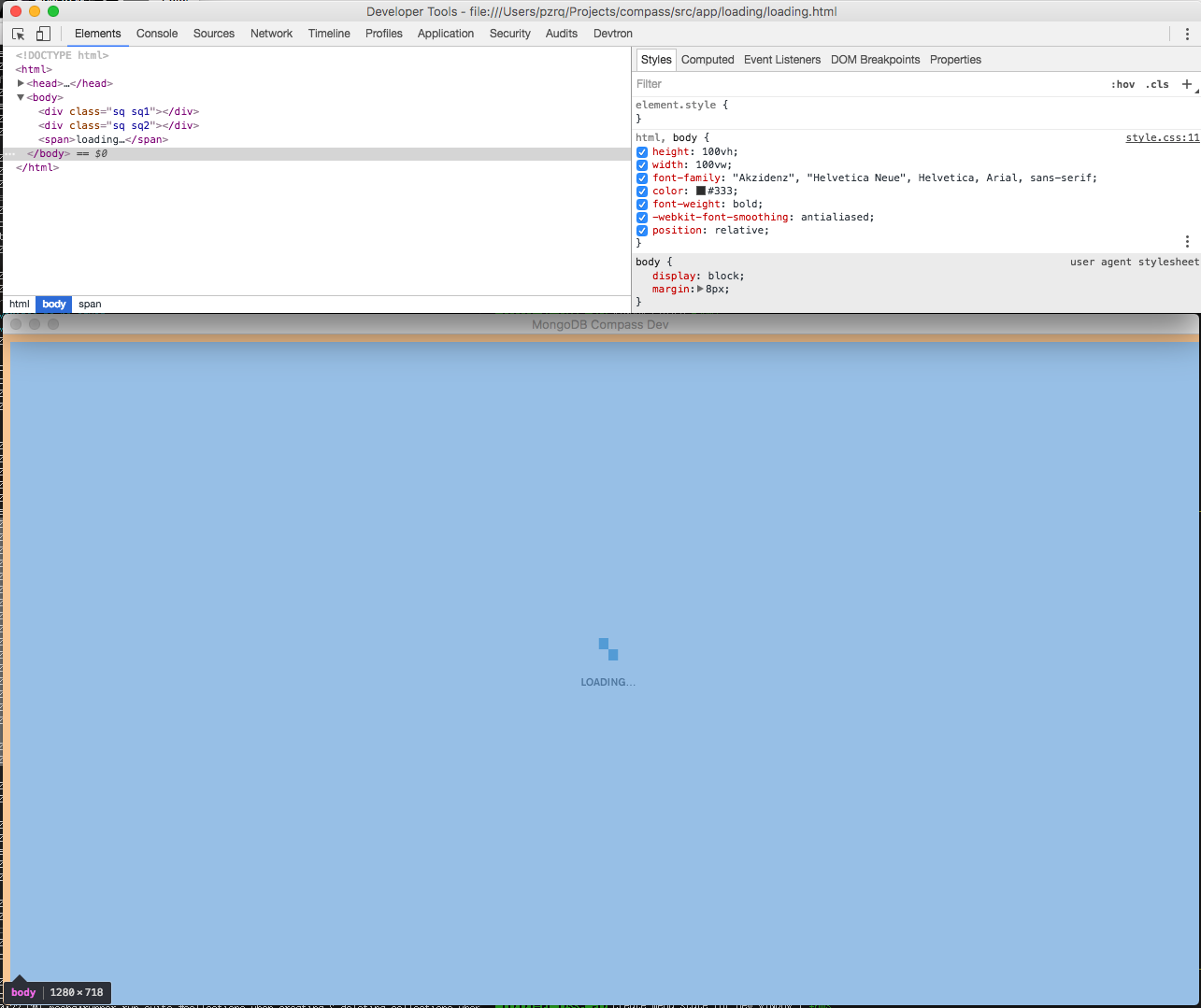 … (#1205) * Temporarily disable hiding the loading animation So it's easier to inspect its state. * Remove default 8px margin * Use standard top/left pattern from .sq CSS class * Go back to width: 100% removing margin/padding No flexbox needed in this context. * Remove duplicate text-align * Abstract towards a reusable loading animation component CSS animation appears to be special enough I don't know how to handle it in this context, perhaps it needs another wrapper? * Revert "Temporarily disable hiding the loading animation"