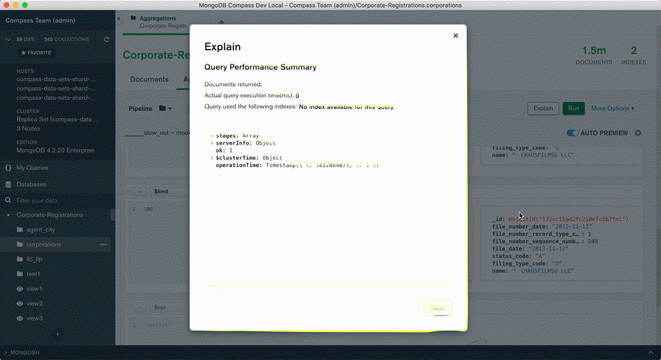 ({ nReturned, executionTimeMillis, usedIndexes }) => { | ||