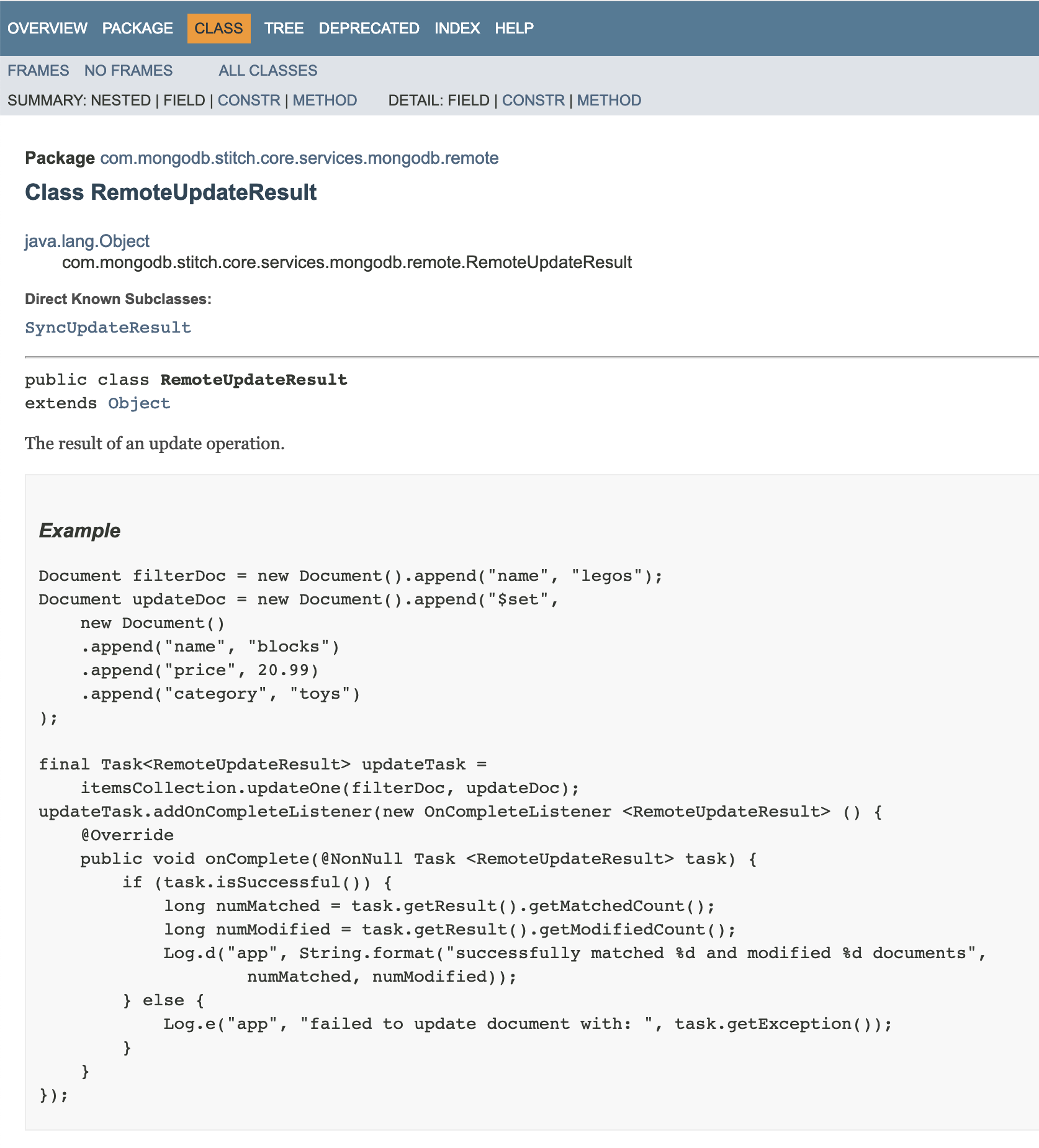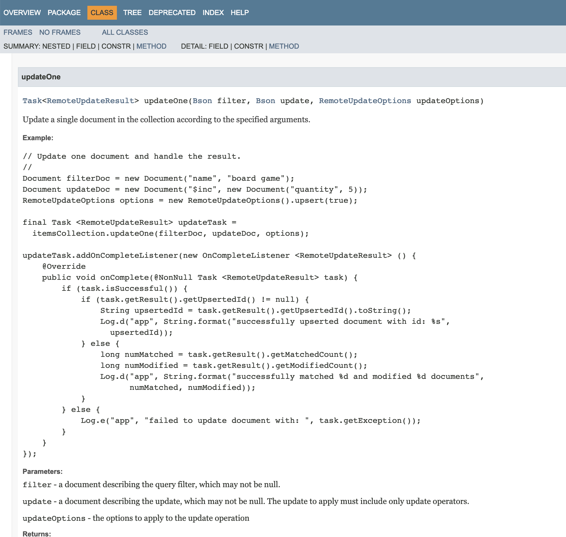 https://docs-mongodbcom-staging.corp.mongodb.com/stitch/bush/docs-examples/sdk/android/com/mongodb/stitch/android/services/mongodb/remote/RemoteMongoCollection.html (scroll down to