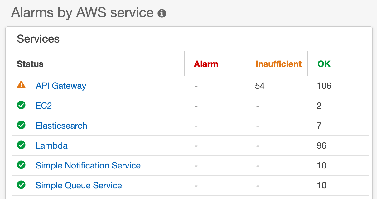 Available Resource Metrics: AWS/ApiGateway, AWS/Lambda, AWS/EC2, AWS/ES, AWS/SNS