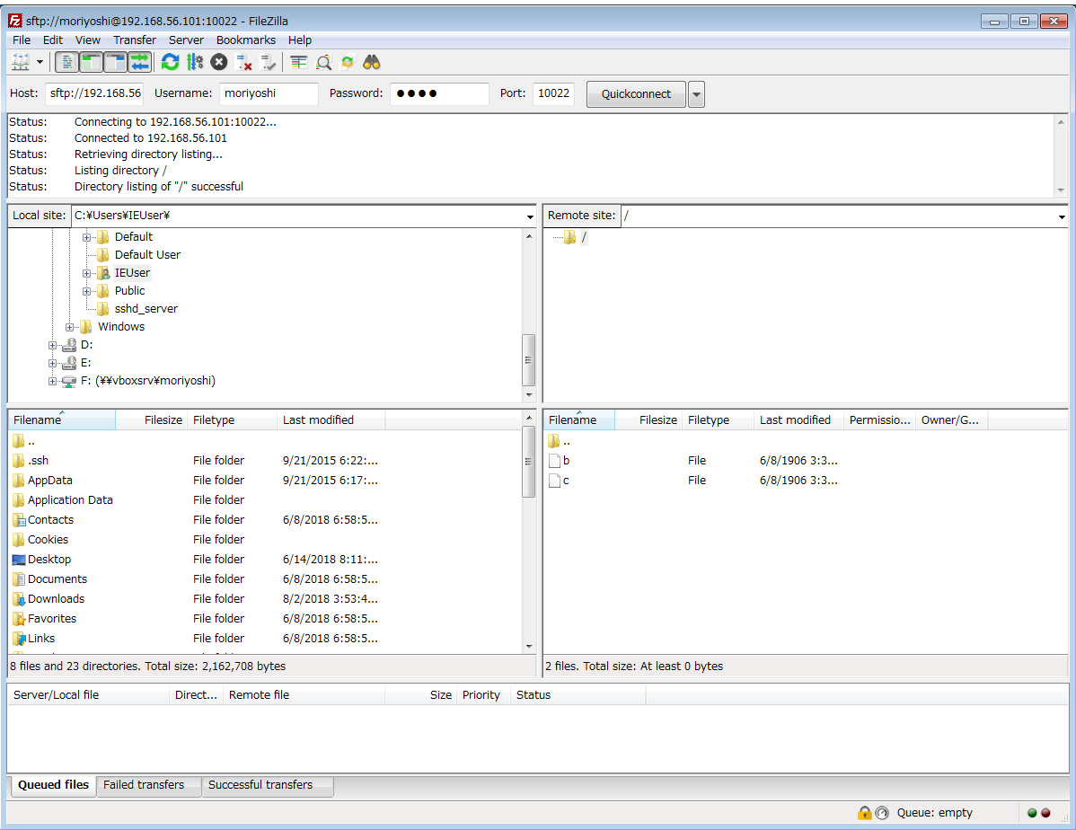 While the files are listed as above by the standard OpenSSH sftp client, they appeared in FileZilla like below: