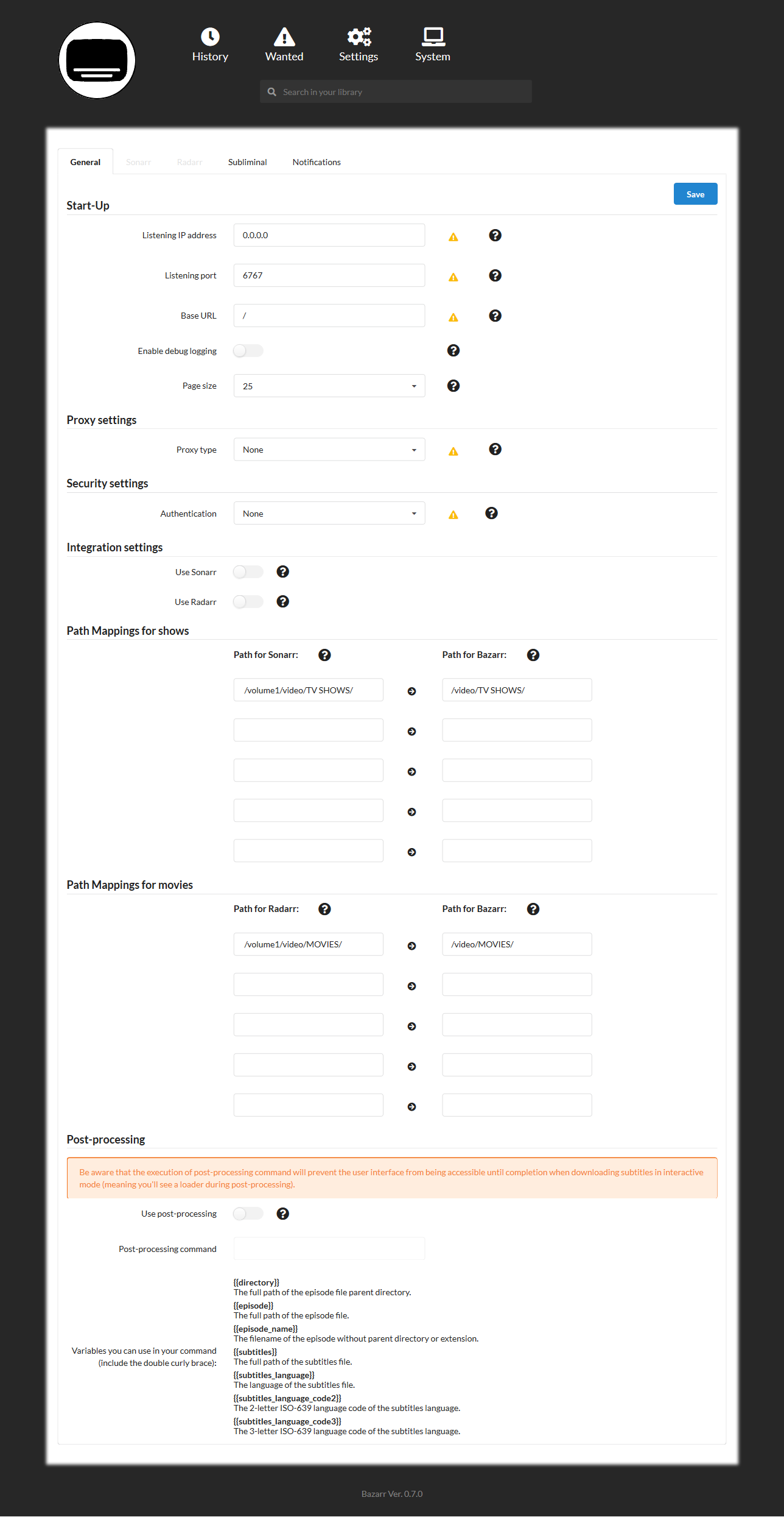 Path mapping for shows: Path mapping for movies: Save this then restart Bazarr. |