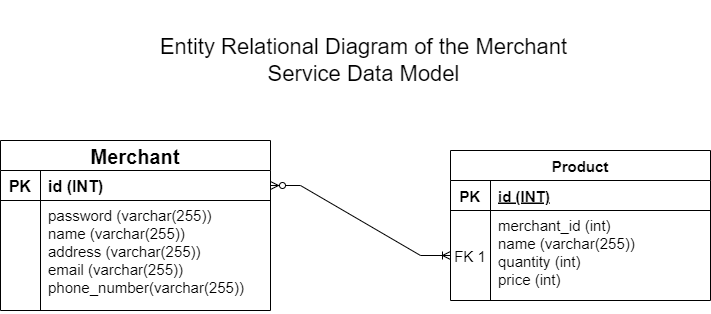 - an Entity Relational Diagram of the Merchant Service Data Model