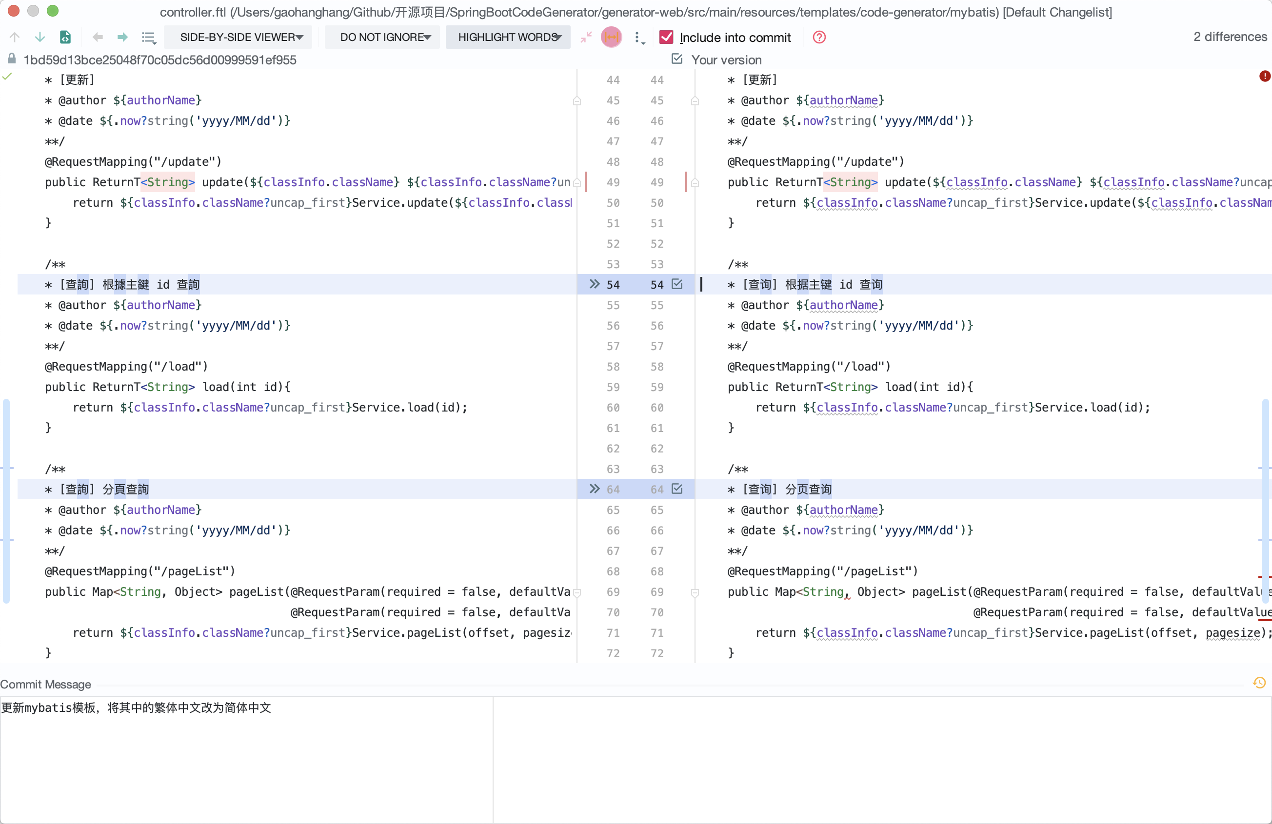 更新mybatis模板,将其中的繁体中文改为简体中文 #54