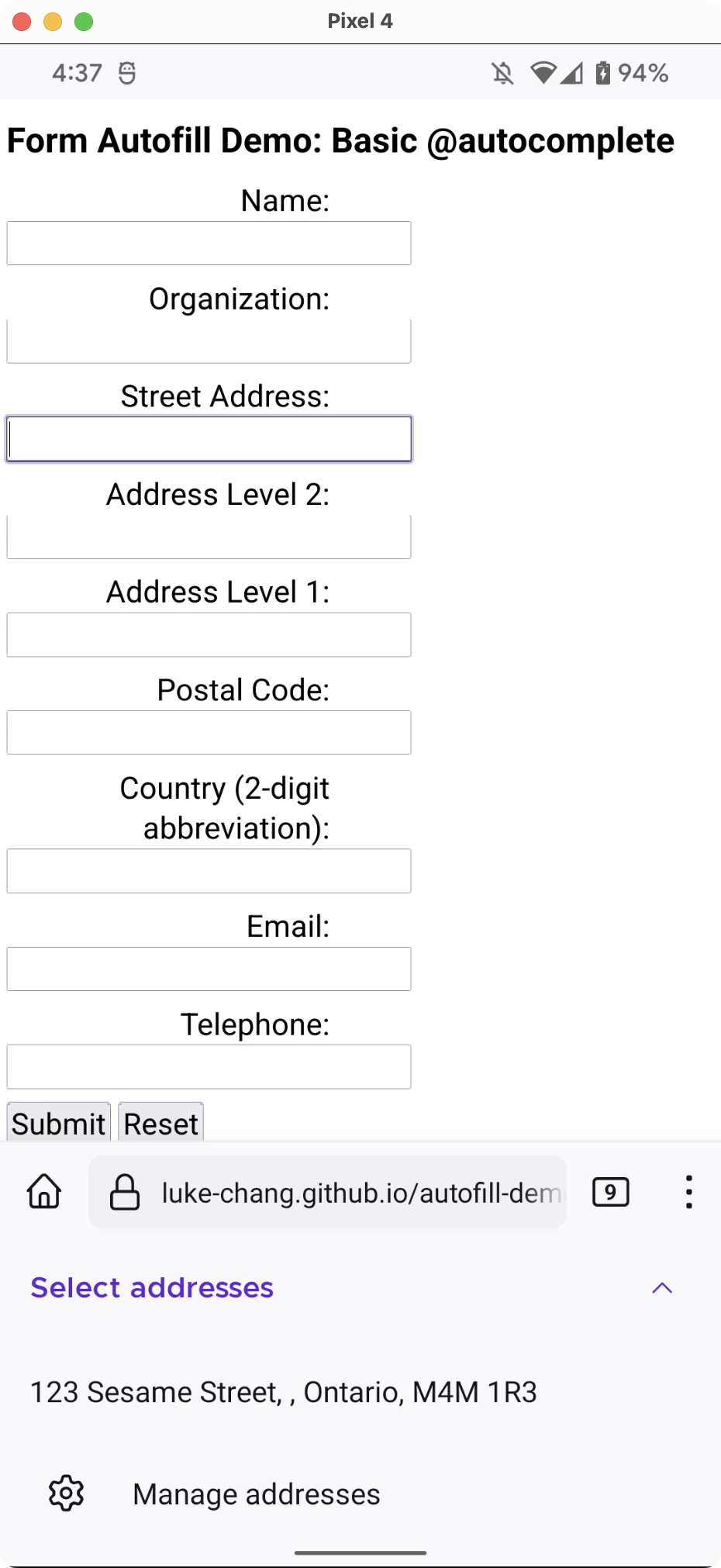 <autofill>Credit Card, Addresses and Logins autofill functionality