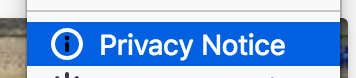 We already have this as section_info_privacy_notice=Privacy Notice although it's used as a link instead of a menu option. @flodolo ? (The "section_info_*" will be unused with this change..)