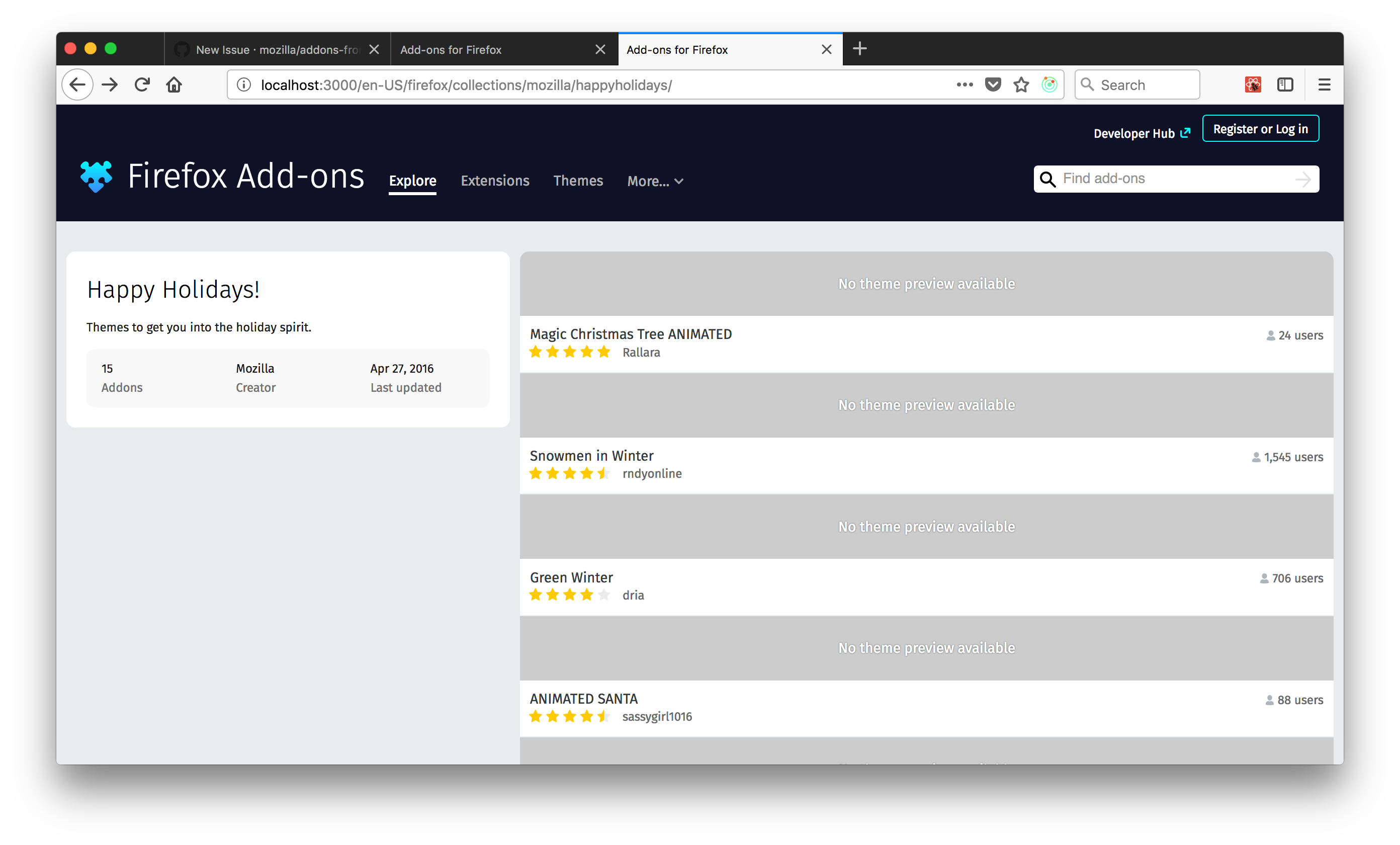 themeDataproperty to this internal representation. It helped fixing an issue with collections not displaying a preview (because thecollectionsreducer uses internal addon representation).(Note: I am aware of mozilla/addons#10819 but did not want to open a big PR)