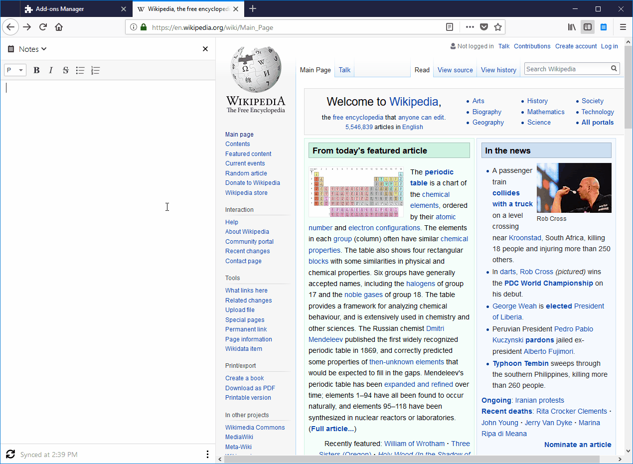 Have a Firefox profile with the latest version of the "Firefox Notes" add-on (2.2.0dev custom build from 01.08.2018) installed.