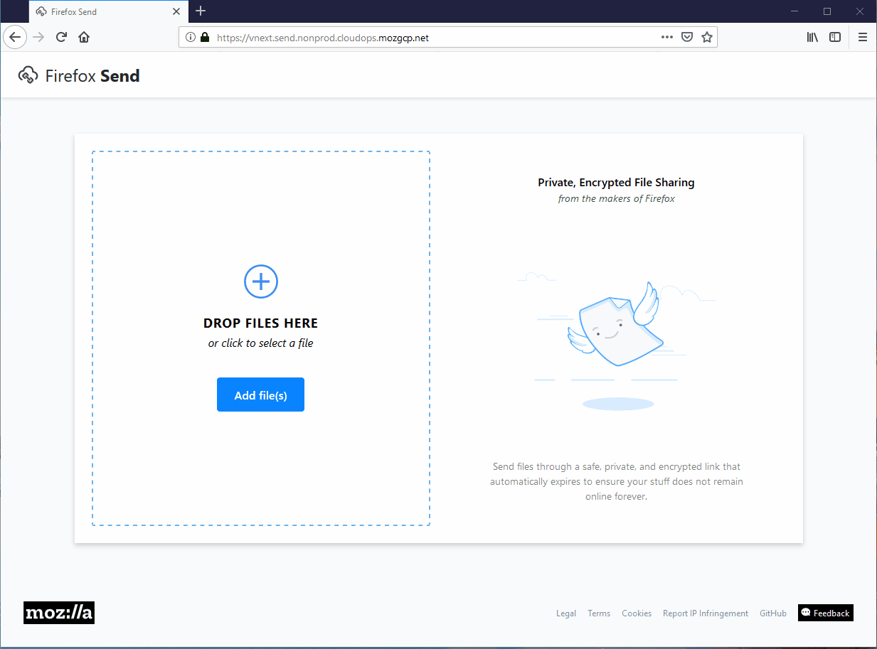 1. Open the new Firefox profile and navigate to "https://vnext.send.nonprod.cloudops.mozgcp.net/" page.
