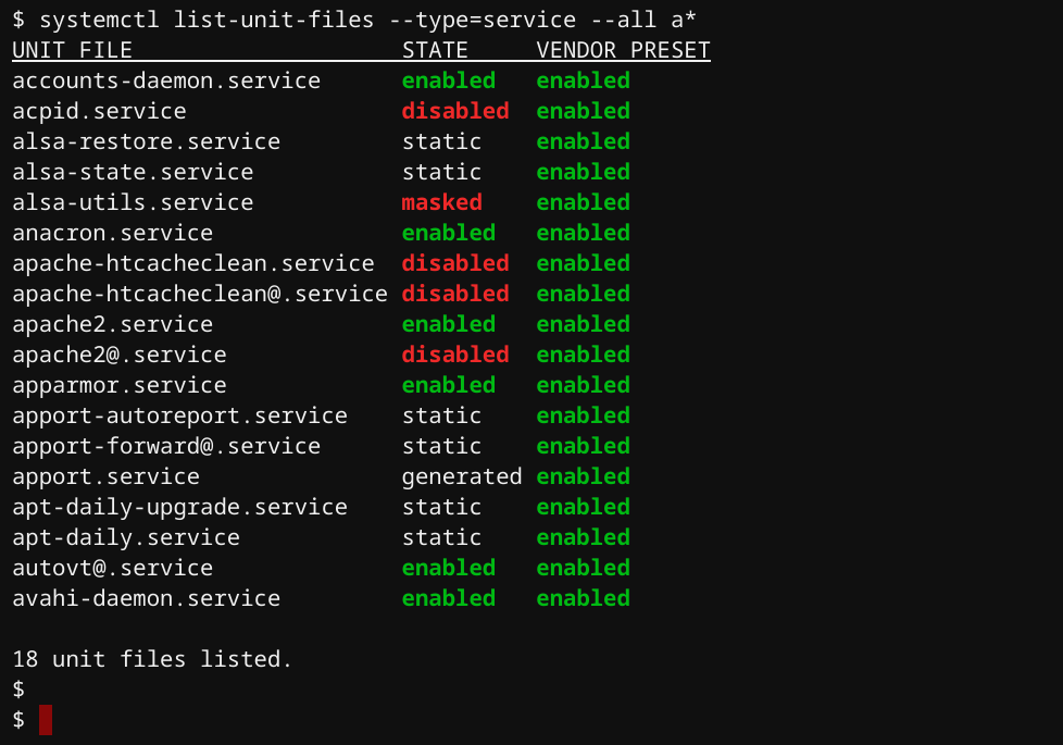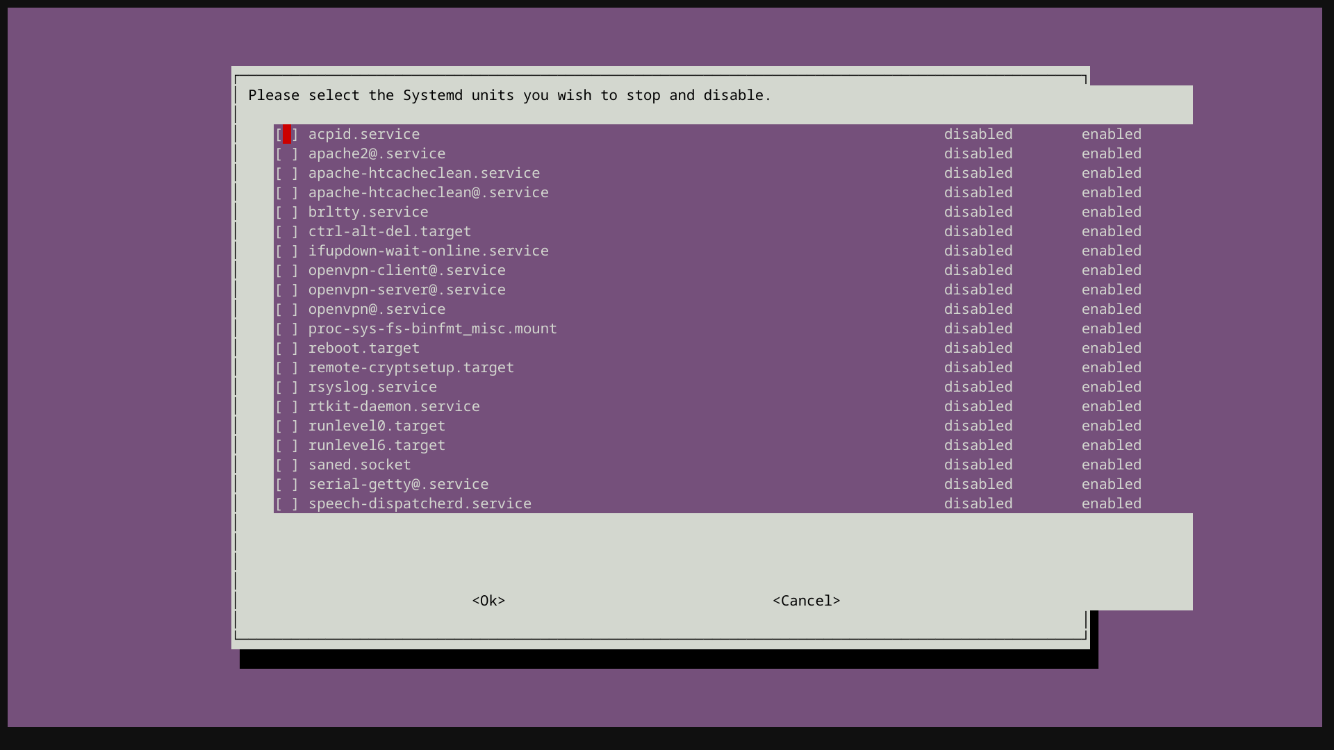 │ [ ] apache-htcacheclean@.service disabled enabled