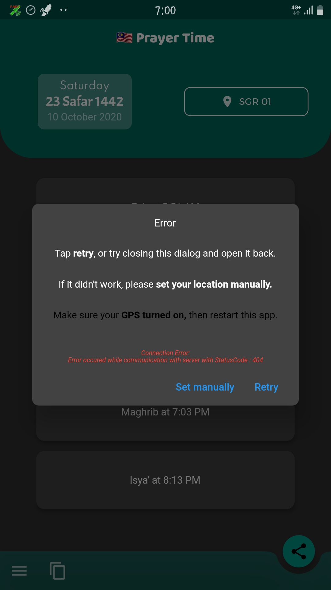 Error message when failed to fetch location