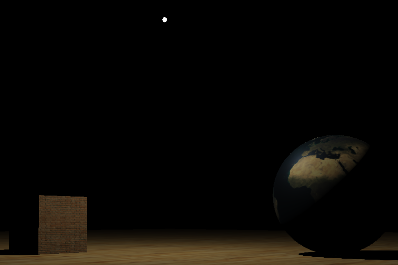 Brick cube is 1 meter in size. Light is 2 meters from floor. Globe is 25 cm in diameter